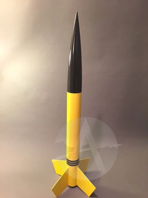 The Hobgoblin, reminiscent of a popular “D” powered kit from years ago, is designed to be an easy to assemble kit that flys to spectacular altitudes. It is capable of flying to altitudes over 3,300 feet on an Aerotech G80 motor. Features through-the-wall fins, and a thick-walled paper tube.