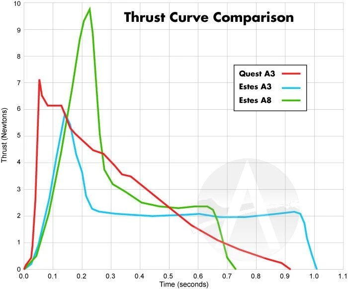 A great bulk-package deal for schools and group. Contains 25 motors! The Quest A3-6 rocket motor is for small light-weight rockets. It features composite propellant, which has twice the energy as a black powder motor. Same size and diameter as an Estes motor, so it fits all your favorite rockets. But this is for single-stage rockets only, as it cannot be staged.